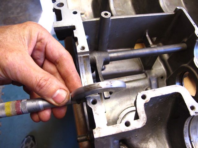 I first drilled a hole in a piece of acrylic to hold the shift fork rod at 90deg, slide the fork over it and measure the gap on each tip to the base.