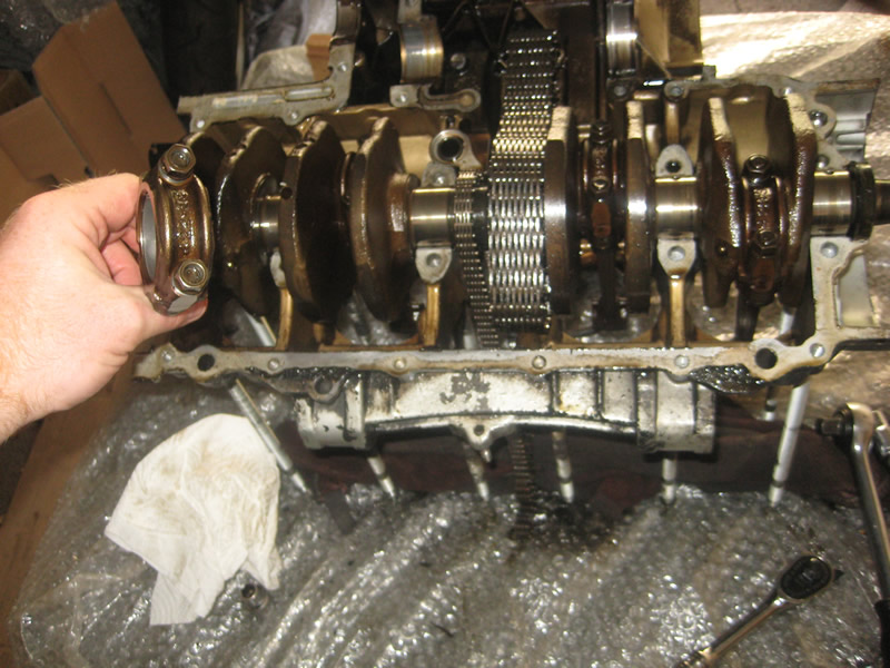 Just an observation, but the bottom case main bearings show wear, they are worn through to the copper layer. The clutch basket is sometimes lose and would make a noise in neutral with the clutch out, that noise going away with the clutch pulled in. Primary chain often makes noise as well. The window on the shifter should be enlarged as per Honda TSB for a lower chance of missed shifts/possible popping out of gear. The exhaust valves should be checked especially on the inside cylinders. Might make sense to build a bigger motor now on your cases with a 900 crank/and a bigger block (1000 and 1100 blocks had better cooling fins)