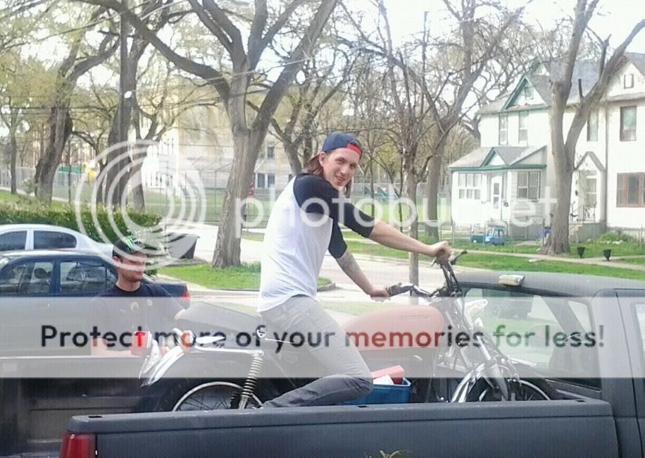thats really clean for $100...ya could make ur money back an then some...how r the laws in canada far as modifications to bikes? in maine they r dicks bout it...i register old bikes as antiques so i dont have to get um inspected but ur not supposed to modify um but i dont care n i modify um anyways...figure out what parts ya dont want or gonna use n sell um on ebay so ya drum up some money to put towards the bike...i dont see why a bobber would b a bad first bike just keep it upright n dont ride beyond ur skill set
