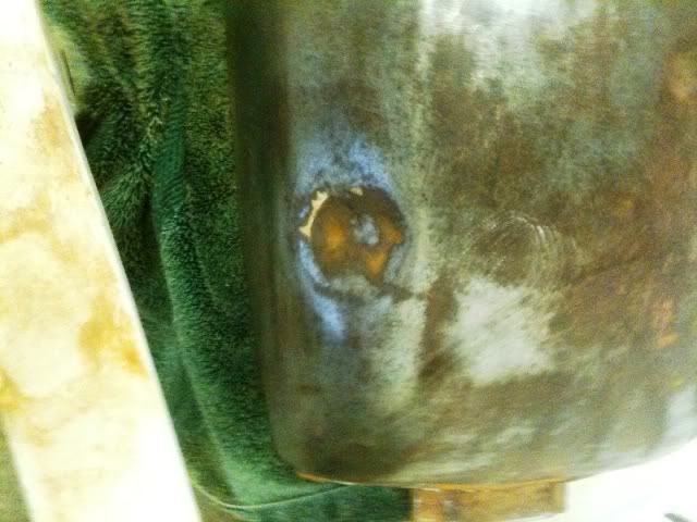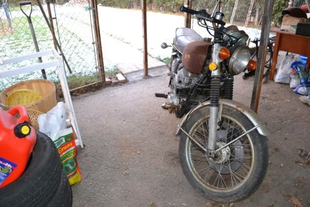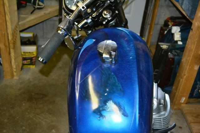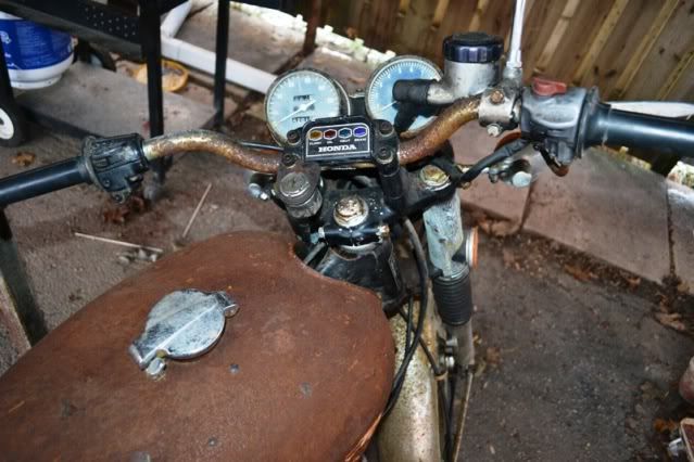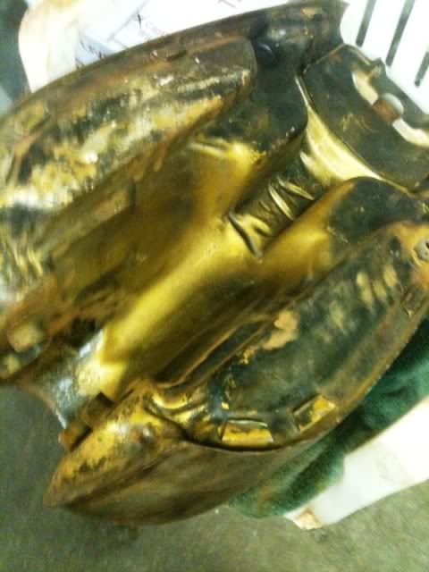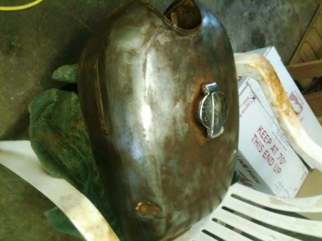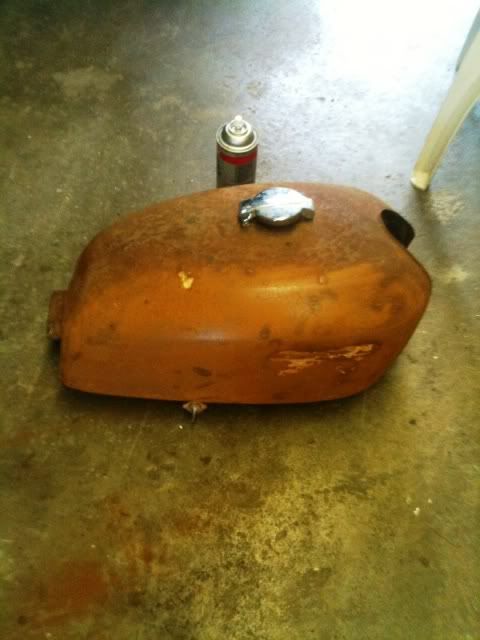 Want to call of the day but change my mind and strat to clean that rusty tank .Somebody didn't like that Honda sign on it and put a lots of bondo on it.