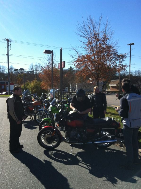 With all bikes gassed up, leaky fuel lines and oil lines fixed we set off for Rt 44 passing through heavy Saturday morning traffic...when...Alexs not-so-trusty 550 lost all power