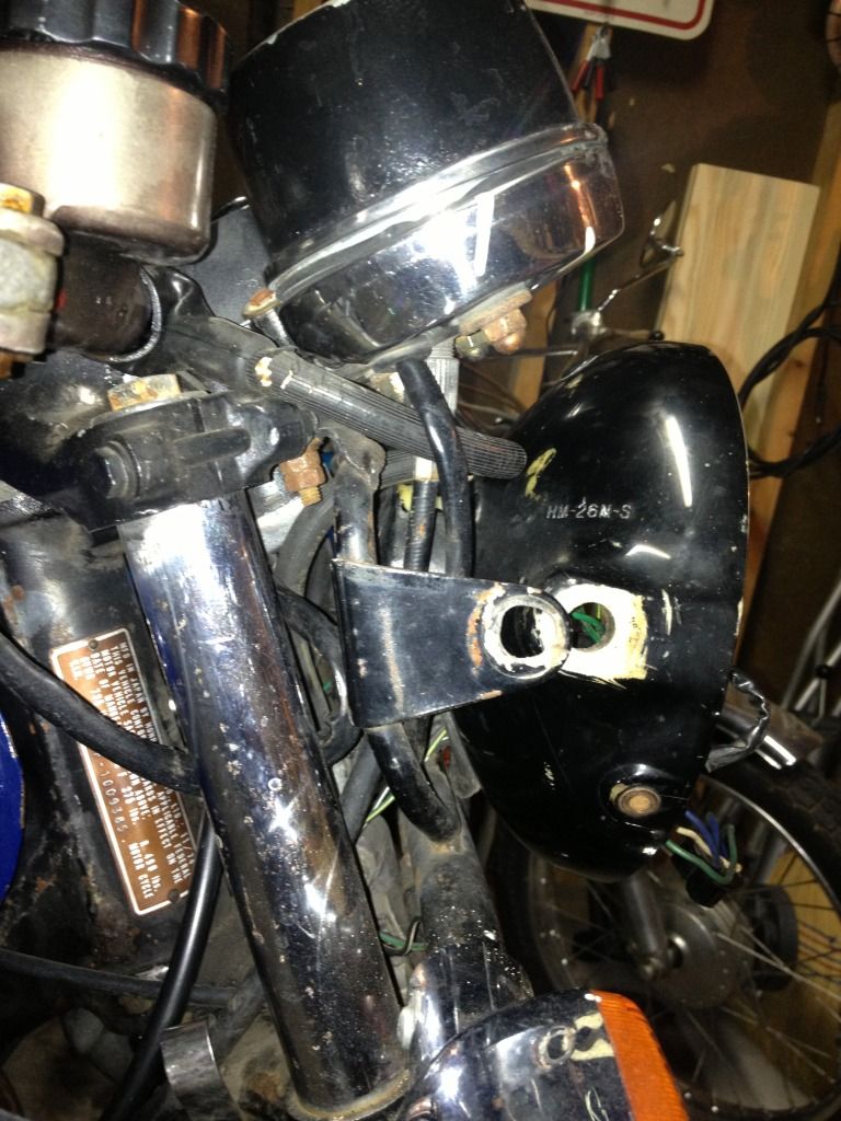 Does anyone know the size of the headlight for a cb400f? I just bought my new little project and I think someone changed the bucket on me??  I replaced the headlight with a 6 3/8 Candlepower unit and it seems to small for the bucket. The light it's self is much better but the fit is alittle odd. I now have a gap of approx 1/4 inch all the way around it?  I could have bought the wrong unit or the bucket has been changed ? I "think" the guy said he changed the lamp with one from another bike, cb600, but I really can't remember.  This is the one I bought