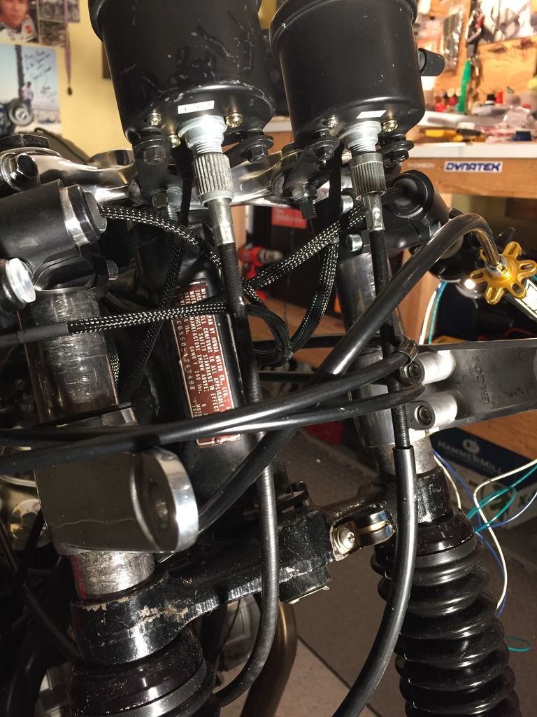 The majority of those green wires you see on the left side there are 5 that come off the tach. But from up front I think I probably have 13 or so ground wires in all. Once I have them all routed they will split on each side of the backbone and come together in one ring terminal on each side and then ground at the frame (underneath each P clamp). The reason it looks a mess right now is because I had to order black, brown, and red wire in 22awg to finish extending the wires for the M Lock and the tach and speedo. Once that's done, I can end the sleeving for all the 7 or so looms I have now, deal with the grounds, then create more condensed looms (sleeving and heat shrink) and continue on to the M Unit.
