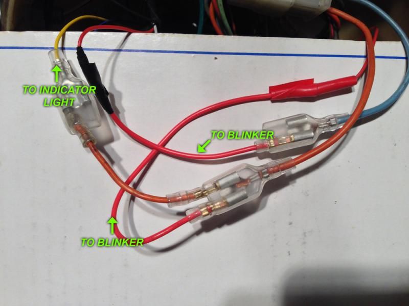 For the record, I already tried to feed the two separate wires (orange and light blue) into the one terminal for the one indicator light... didn't work. My electrical expertise is limited, so I don't actually know the reasoning behind this. Anyway, just wondering how this could be done.