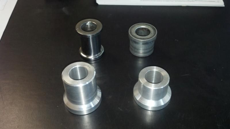 The new rear axle spacers arrived today (in the foreground).  They look even prettier in person.  Going to sneak away early to install. Another check off the list.