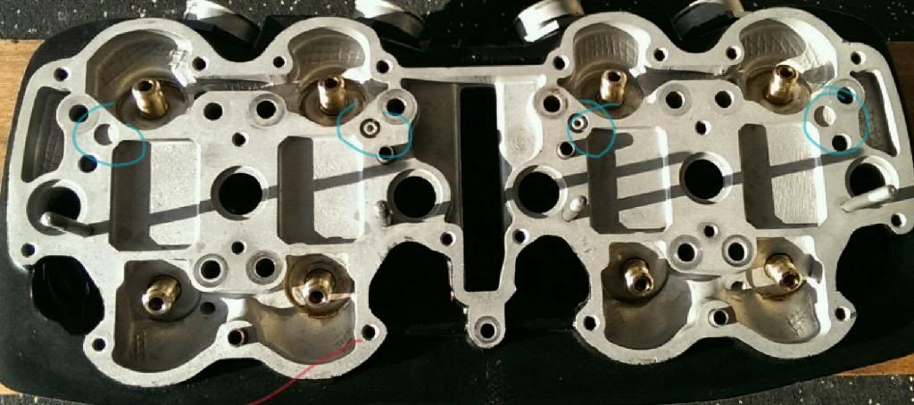 There's also the 4 to seal around the oil feed ports. 2 go between the cylinders and case and 2 between the head and cylinders on the inner most head studs on the intake side. These are of a larger size than the 4 smaller o-rings for around the oil jets and blank ports.