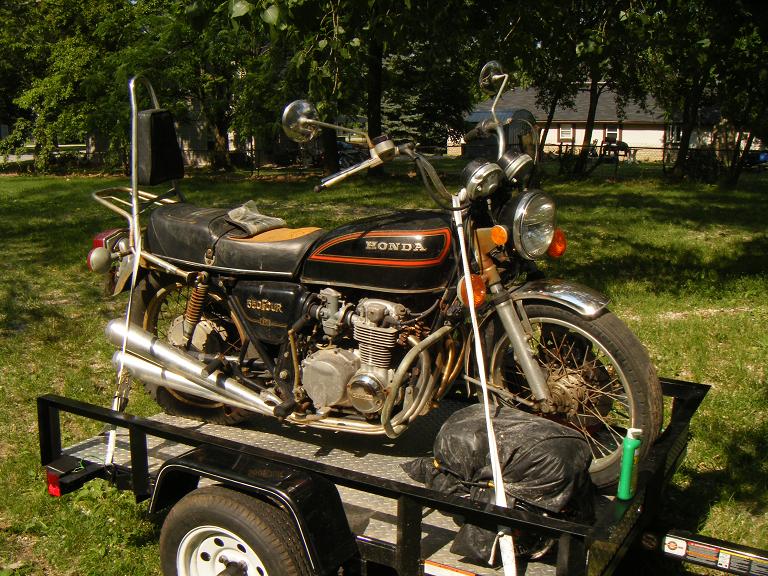 I heard rumors a few months back about an old man about 15 miles from where I live out in the country that had barns full old asian bikes.  I heard this from a family friend.  Well, about 3 or 4 weeks ago I decided to take a trip out to try and find this place.  We went out and eventually found it after getting a little lost and what we found left us both stunned.  About 4 barns full of asian bikes from the 70's mostly.  As the story goes the old man is 93 now, and in a nursing home.  He has left this part of the estate to the guy I dealt with.  Well, I came home with this 350 four and also a circa 65-66 sears allstate 175 and a few tanks. The price?  Well he told me , $50 a bike , except for the rare stuff.  Now this place was packed with 750s, 550s, tons of 500t's, kaw triples, a few rd's and tons more.  He estimated 5-600.  The problem with most of them is that they are partial bikes with no paperwork, great for parts, but hard to resurrect one out of.  Well thats enough chat for now, onto a few pics.