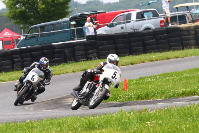 Next up was New Jersey Motorsports with AHRMA. As a bonus Brent Waller, Mike Rieck and George Schuld (helping Matt Esterline) were also attending. The trip did not get off to a good start. Wednesday afternoon I tried to start my van to hook it up to the trailer and it would not stay running! It cranked, fired, and then died. After about 6 tries I called the towing service and had it taken to the repair shop. They did not have any quick fix suggestions and I left it with them. My brother was planning to attend , but not race. He had returned to the doctor as his leg was continuing to give him trouble. New x-rays showed the leg was indeed broken, so no racing for him. Fortunately he had driven his mini van out and my bike fit with one inch to spare. So off to NJMP we went.