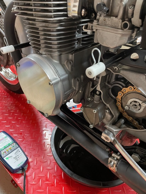 Following my normal oil change routine I changed the oil on Wednesday. Much to my horror I found metal on the drain plug magnet! Definitely gear metal. Pulling the oil pan confirmed there were broken gears in the box. A shift dog had broken off second/third gear and the other two dogs were cracked! I'm wondering if the hard welding and race cut is the reason. With one week before leaving for AMA Vintage days the wrenches were flying. Pulled the motor and removed the lower case. Not only was second/third missing a dog, but the fragment had gone through the fourth gear set. Fortunately the custom first and fifth were not damaged. A used motor bought for parts was then torn down to source donor gears. The motor was reassembled with a mix of stock and race cut gears, male and female. Fingers crossed, just need it to hold together for Mid-Ohio as there is a gap in my schedule for a proper rebuild afterward.