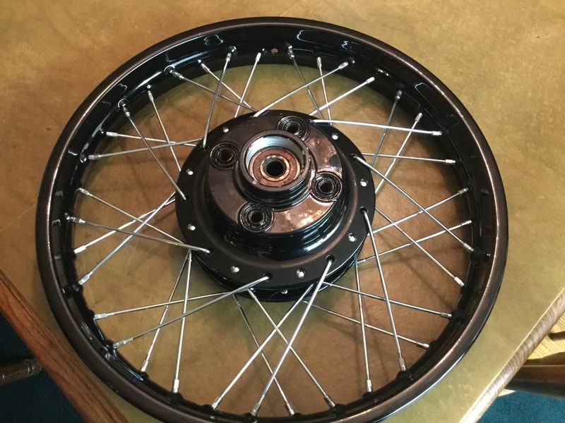 Dropped off the front and rear wheel with the powder coater as well as the front and rear hub. Getting them all done in gloss black. Plan to go with polished spokes. We have a spare front and rear complete wheel and hub set up so this fist one will just be a test run. To see what it will look like, and to try my hand at spoking and then trueing the wheels. Have not decided if I'll just lace my own wheel onto the cognito hub or go with one they provide. Time will tell.