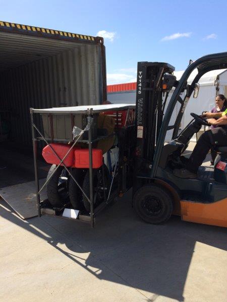 Unloading the shipping crate. Happy to see my bike arrived in good condition.