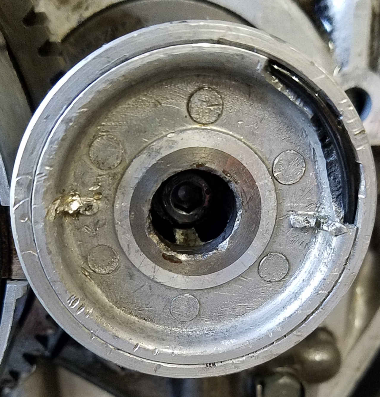 Today was perfect paint stripping weather, cold and miserable, so I took the bike cover off it, and began. I sprayed paint stripper all over the engine, then left it for an hour or so.