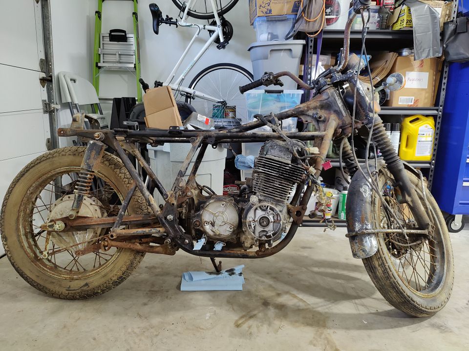Alright lots of progress today. Feels like every fastener is a battle of PB Blaster and heat until I can get everything to break free. Biggest battle this time around was an already stripped screw that I barely got off with the impact before it was completely stripped and the kick starter. So far still only the one broken off fastener on the points cover. Can't believe it.