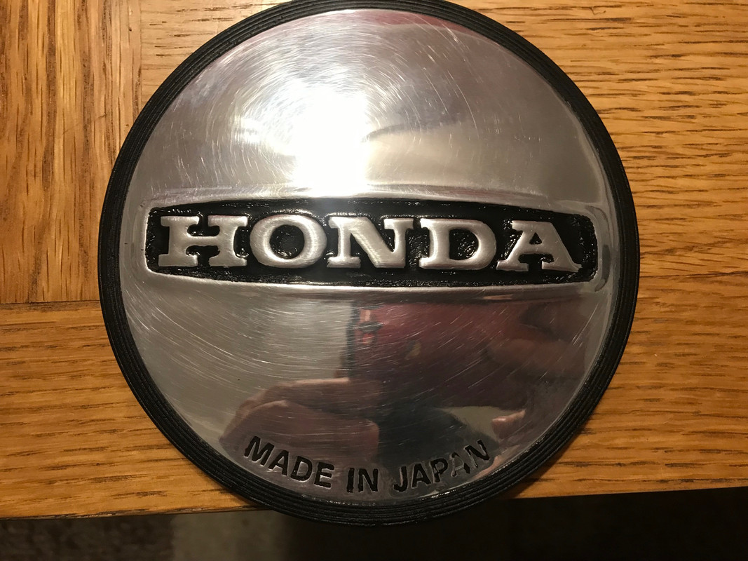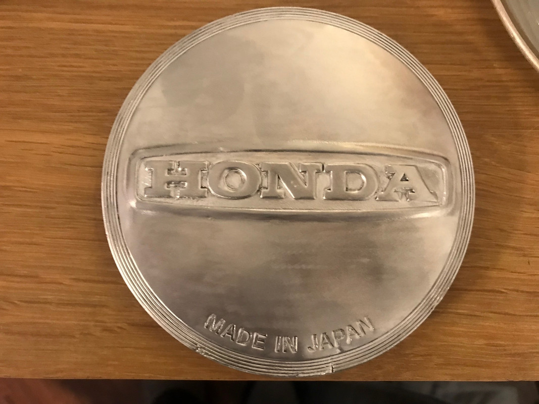 Brian you could try and repair the existing badge. I have mirror polished my rotor cover, to fit an unpolished rotor cover badge would I thought look out of place. Rather stupidly I sold my old rotor badge as it has a very small mark on it and bought a brand new one instead. Only after I sold it did I think of the clash of colours etc so I found a damaged rotor badge and thought I'd see how good I could make that, as an experiment if nothing else.