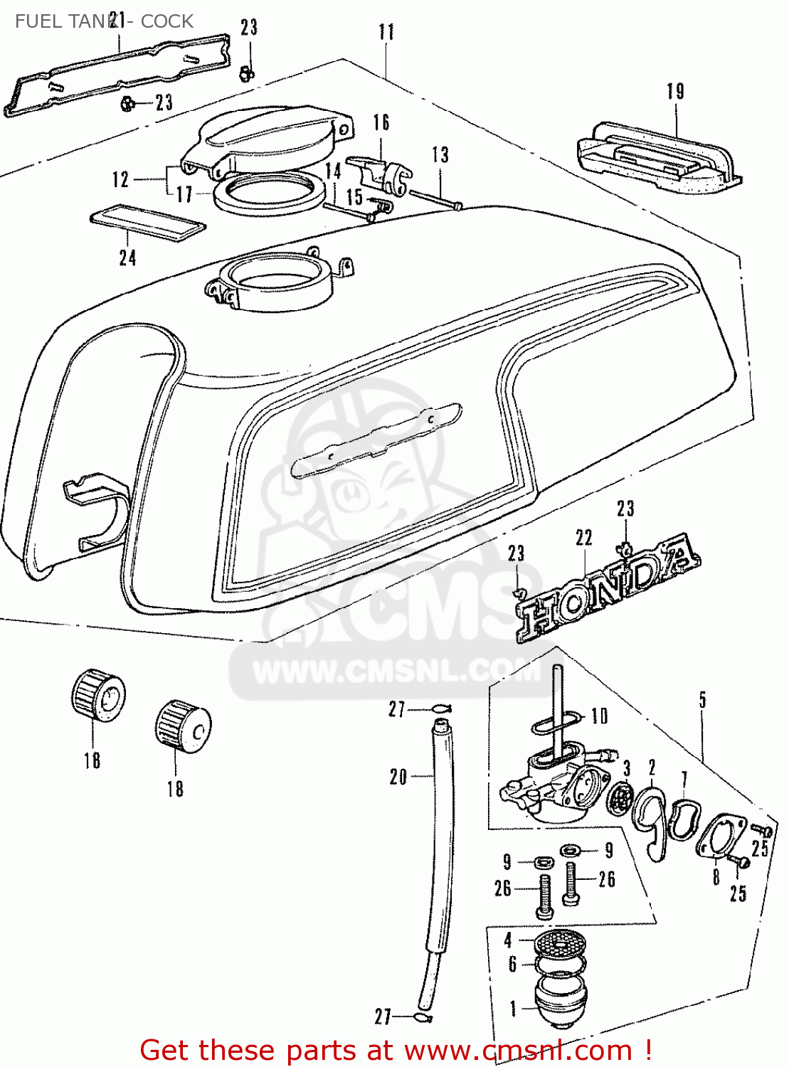 In the years between 1974-1978 it seems like Honda went "petcock crazy". If you have owned lots of Hondas from this period it seems every model and year had a unique, subtly different petcock! changing from one side of the tank to the other, mounting styles, different bung sizes, different numbers of outlets, and different layouts for the selector positions. You have to read the fine print on every single one very carefully!