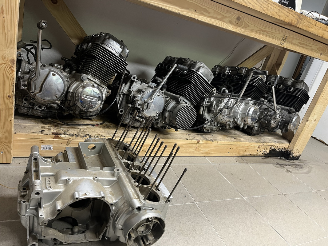 Finally: the F2 and later engines used a special case-width shim 'system' on the mainshaft that today escapes many of the parts fiche (South Sound and CMSNL both miss it) that pushes the mainshaft's gears toward the clutch side of the transmission by a certain amount, depending on how far "off" the chain-drive-side of the engine case was after casting and machining. There are [up to 3] shims on that end of the mainshaft, of 0.1, 0.3 and 0.5mm thickness (and I have also seen 1mm there, in an F3 engine that lives in Alaska now) that pushes the mainshaft's gears toward the clutch side to ensure at least 3mm of gear dog depth between gears 4 and 5 on that shaft. It was a quick-and-dirty way to reduce machining costs of the K7/8 engines (and the F3 sometimes has this 'feature', too) if the injection-mold machine came up a little short of aluminum on the cases (this area is farthest from the injection site). The earlier engines were cast with lots more handwork than the later ones, so the transmissions seldom come even close to swapping between them.