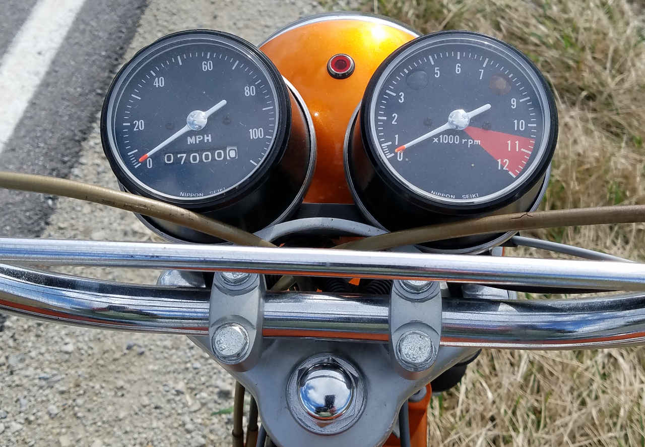 Anyway the process took a bit longer than my tapping this into my iPhone, so I didn’t have time for a long ride, plus I wasn’t happy with that fuel line (I could have driven to the auto parts store but I like to use clear fuel line so I can see that fuel is going to the carbs) but I thought I would just go for a quick lap of the road outside the storage place. The throttle was still way too stiff, so I couldn’t just ease the throttle on smoothly, it really pissed me off, either almost stalling it, or over-revving it.