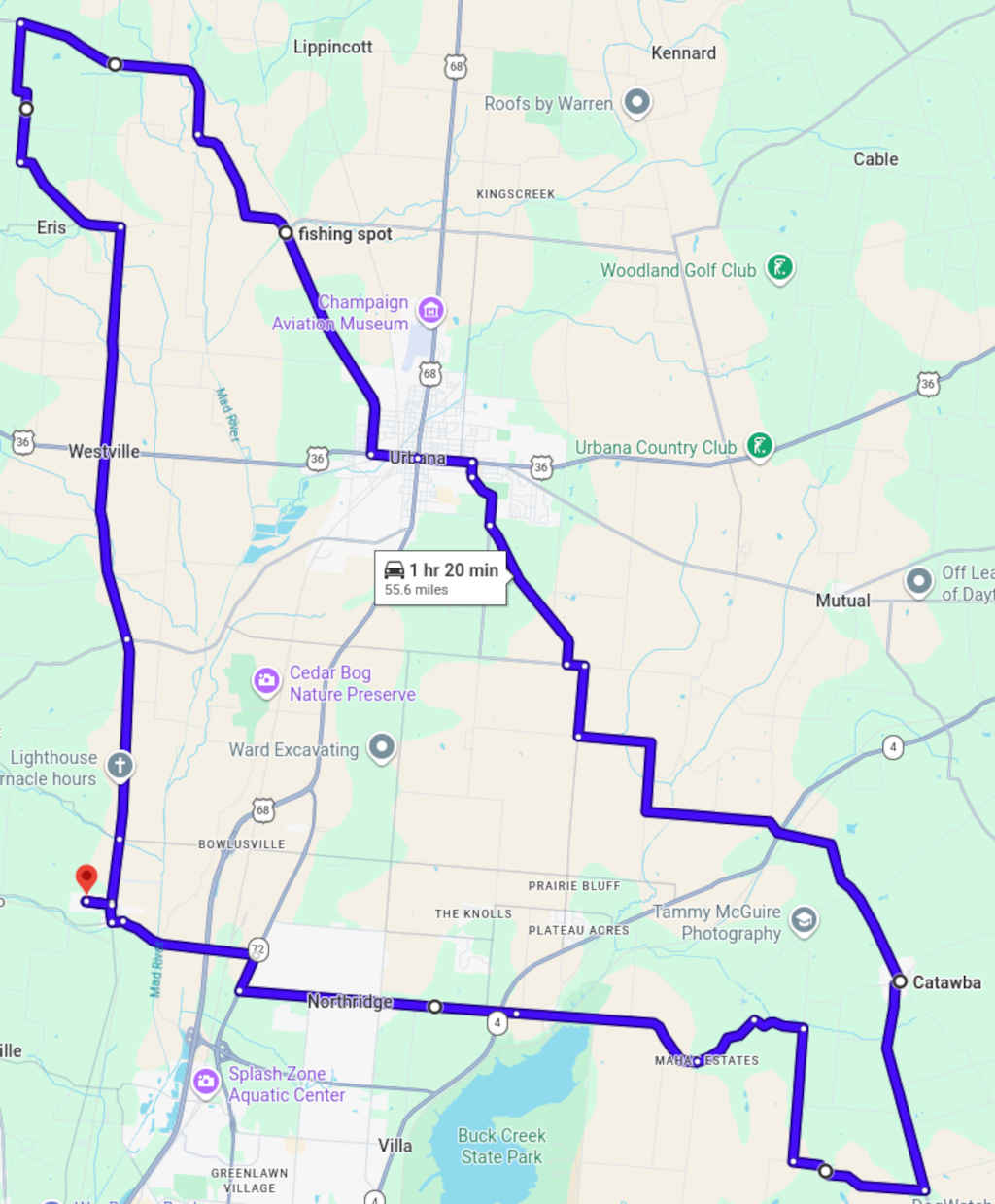 Pretty much a ride with no destination in mind, but I did however ride the "Donnelsville Dragon".  I got that name from watching a local guy on YouTube.  He posts about off-road rides here in Ohio, but mentioned this particular route.  Made me laugh the first time I heard it as I've ridden the exact route myself many times.