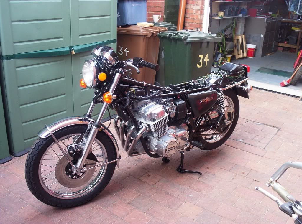 Should have a battery on Monday, the mirrors and muffler (BSM from DSS) should be here by the end of the week and then I can attempt to fire her up. The seat was going on but the hinge and catch plate were rusty so they are being dealt with today.