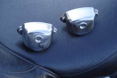 Those rocker shaft plugs/cover reveal the rocker shafts themselves. If you peer straight into the shaft holes you can see the shaft ends themselves. They should appear perfectly centered in the holes. If they do, count yourself lucky. Pre 77 CB550 cam covers did not have a feature to hold the shafts from turning with the the rocker movement. This wore the cam cover aluminum and altered the rocker geometry, which can lead to abnormal cam & rocker wear.