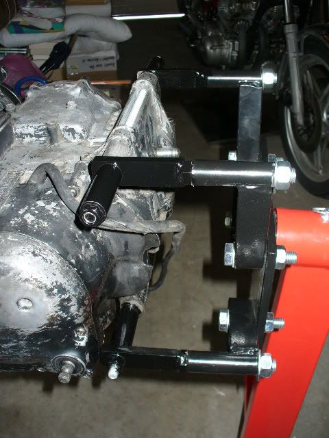 been thinking of modifying a stand i have in the same fashion, but the two concerns i have are: 1) what do you do when you split the cases? and 2) not sure if i trust those little welds with my engines.