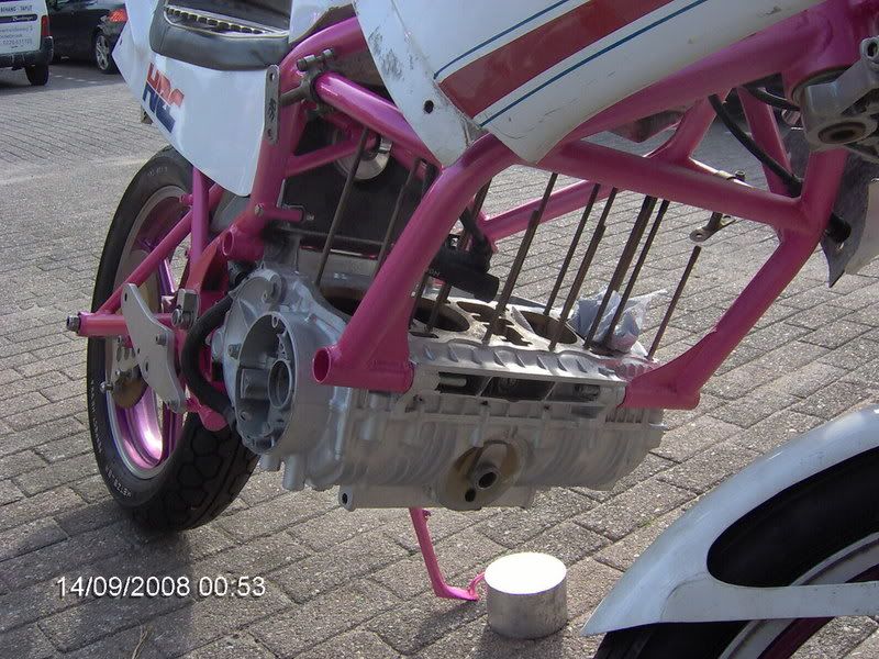 The rear of the engine is the 'box' for the frame. There are 3 major bolts there: the upper engine bolt, the lower engine/footpegs rod, and the swingarm bolt. These 3 must be tightened first when assembling the 'system'. It causes the middle uprights of the frame to twist inward, rigidizing the whole middle of the bike. Then the lower and front bolts of the engine get tightened, and the engine stays perfectly square. If the front bolts are tightened first, the rear wheel can end up off-center ever so slightly, as the swingarm's pivot is not square to the frame. This will be felt in the bike as a push-back in the right-hand grip when you are riding.