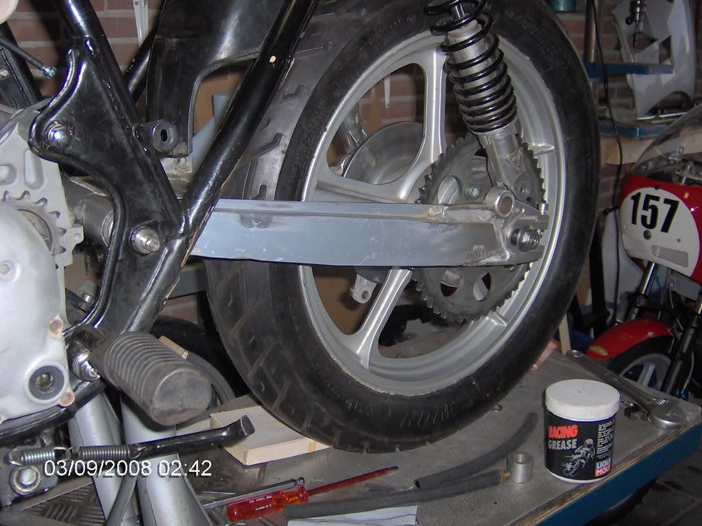 The standard arm is a great design, it's already a "box section" so a lot less "flexy" than Kawasaki and Yamaha's offerings from the same period, is not heavy, and is easily "braced" as there are very few "appendages" getting in the way.