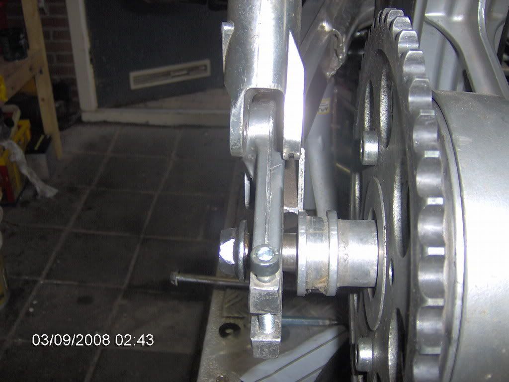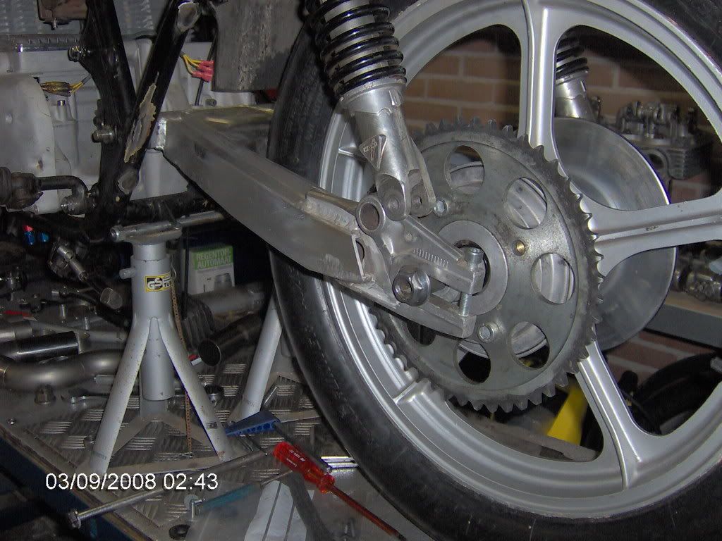Back to reality for a mo, I've got an alloy GS/GSX swingarm here, I thought about making some custom swing arm bushes and fitting it to my CB750 endurance racer project, but it's 3 inches longer than the OEM arm, so (unless you're building a drag bike or a hill climber) it's pretty useless in the real world. I thought about shortening it, but it'd be a lot trickier than cutting a couple of inches off the arm. You'll also have to slightly narrow the shock mounts, they're too wide for CB750 shock clevises.