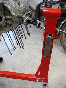 K&L bench top stand. But it’s $172.00 and I didn’t want to give up my bench space. Then I had the idea that I could make a K&L style rotisserie by modifying a second stand and mounting it to the first, with the added benefits of it being cheaper, self contained, and on casters. The next challenge was to come up with a way to remove the engine. I remembered seeing