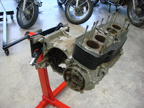 The Bottom EndIn case you don’t know, (and if you’re like me, you don’t know until after you needed to know) the cases split horizontally on a cb750 engine. And if you’re going to get inside and do any work, you need to invert the top half of the case to get the job done. So to do that, I bought a second engine stand and modified it.