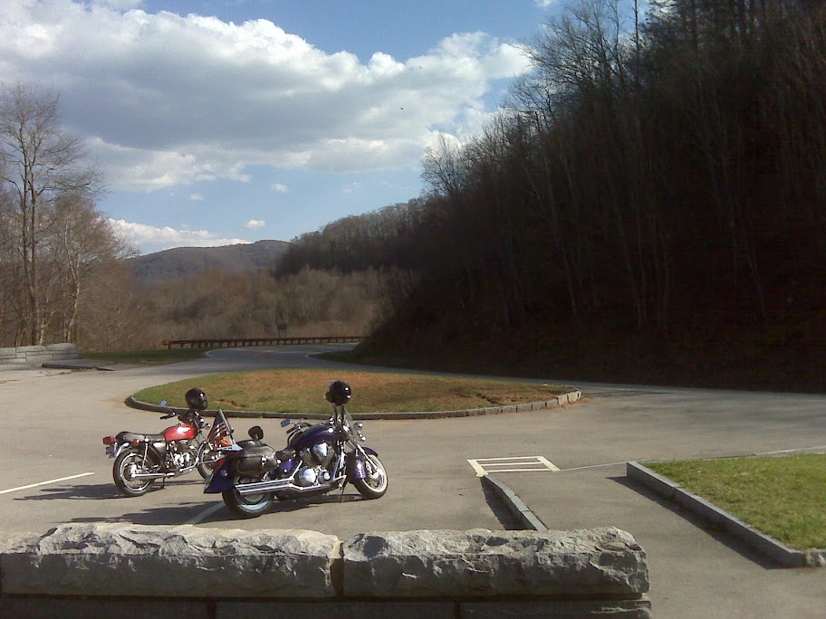Me & my old buddy Dave from MI were running the Dragon on Monday when it finally re-opened. The CB400F was amazing. All 255 lbs. of me, 50 or so lbs. of luggage and it still made it there & back with little to no complaining. Believe it or not, blasting across the Cherohala I had a hard time distinguishing its handling and stability from a modern sportbike.