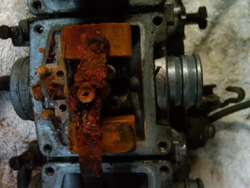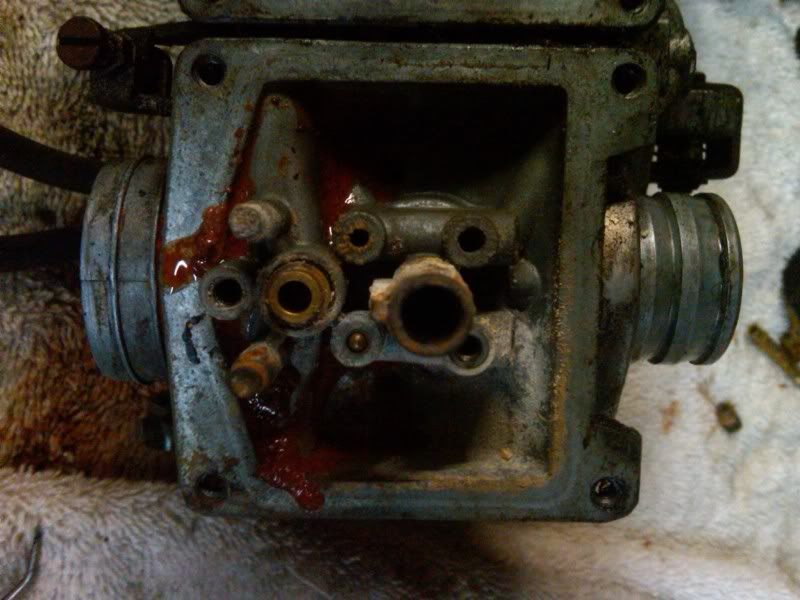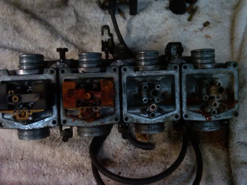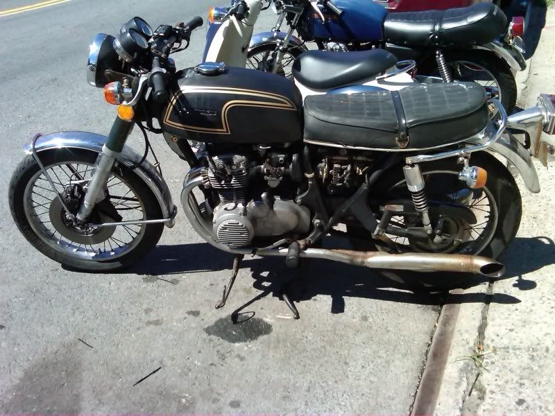 I had an old 350f tank which I took to a radiator shop to boil out and coat the inside. For $100 it was definitely worth it to not have to go through all the steps in a liner kit, and it's a thick bright red coating on the inside. Unfortunately, it left the old paint intact and I was hoping it would come back completely bare outside -- I'll probably have it painted when I sort out the mechanicals. I took off the carbs and cleaned them out and finally got them back on (son of a b*tch). Rebuilt the petcock with a kit. Pumped lubricant into all the cables to free them up. Rebult the front brake caliper and bled the system and freed up the caliper arm.