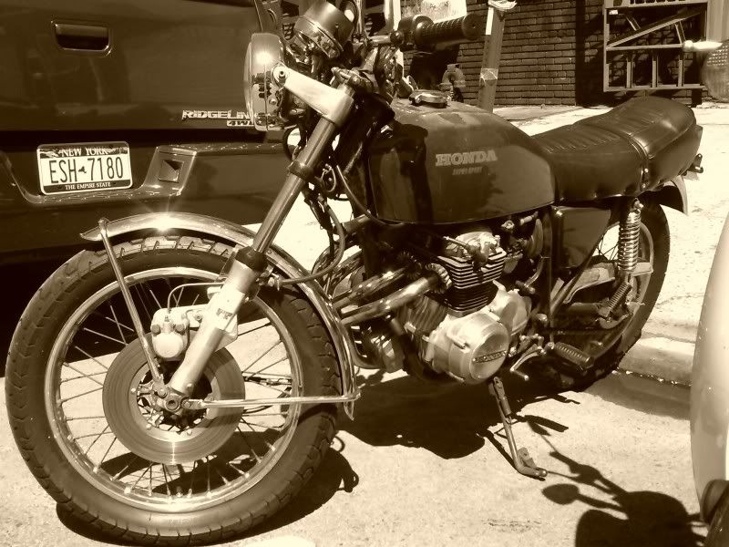 It's taken me seven months, but I've finally gotten a couple of days to finally take on the "NYC Slo-Mo Abandoned Death Watch" bike that I rescued from the trash man back in February. Turns out that under the bird#$%* and grime is a pretty nice Honda. After installing a new ignition switch and battery, then cleaning up all the electrical contacts and control switches, everything lit up -- it has working blinkers, starter, lights, etc. It also sparks on all four. I went over the whole bike with compressed air and had a ton of leaves, dead bugs, trash, nutshells (squirrels?) and other debris come off. I haven't fully scrubbed it, but it’s at a point where I can get it working.