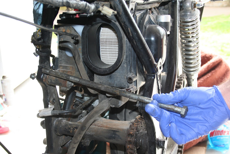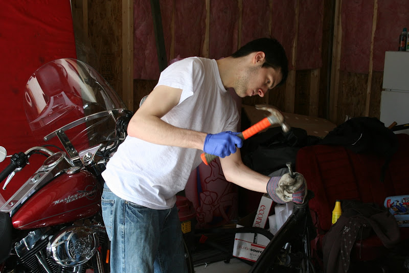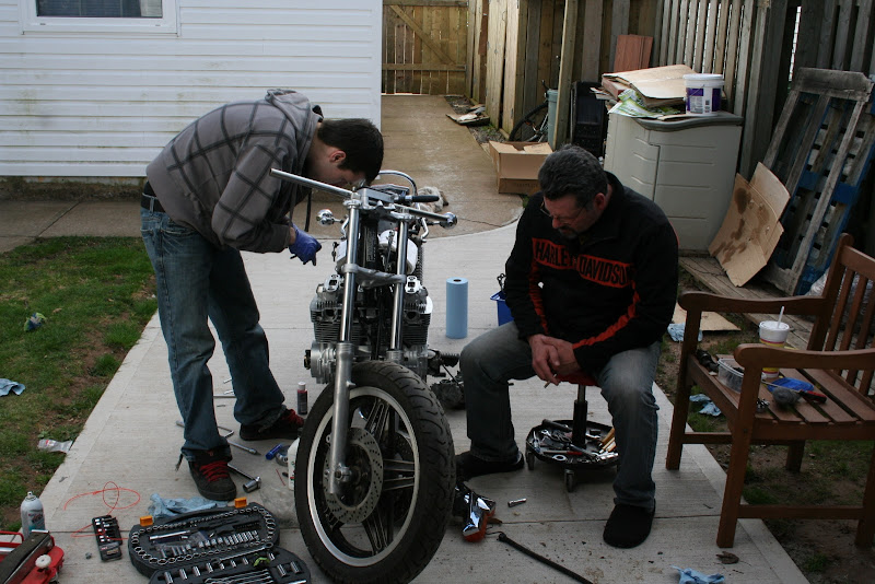 Brandon and I spent a bit of time working on it on Wed, got the broken bolt fixed and the bike running again without oil pouring out. We also took the front end off so we can rebuild the forks, but quit when my clymers manual told me to get them done at a shop. Guess I'll just have to figure out how to do it without instructions.  ??? ::)