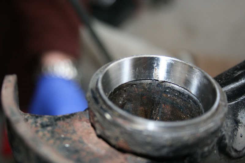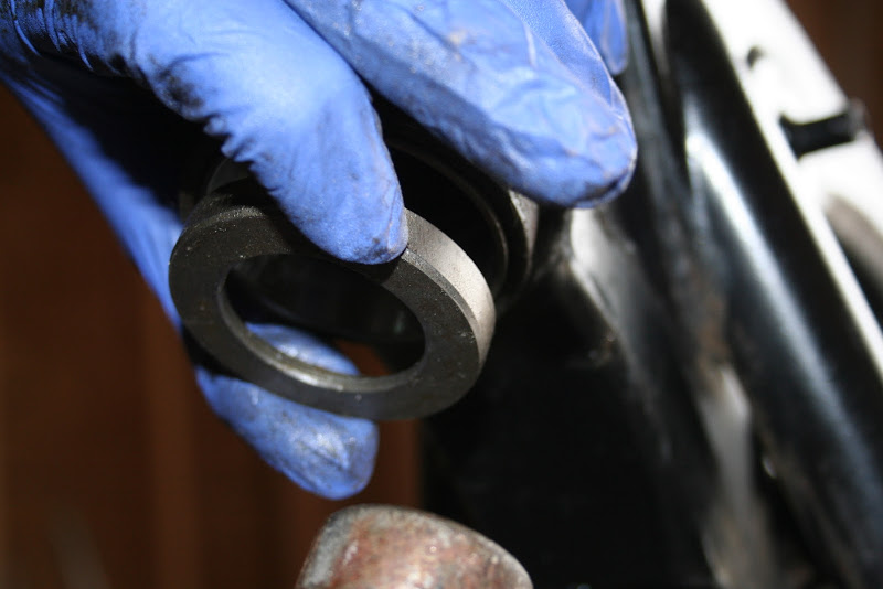 Using the old race to knock it in evenly, we carefully installed the new races into the top and bottom.