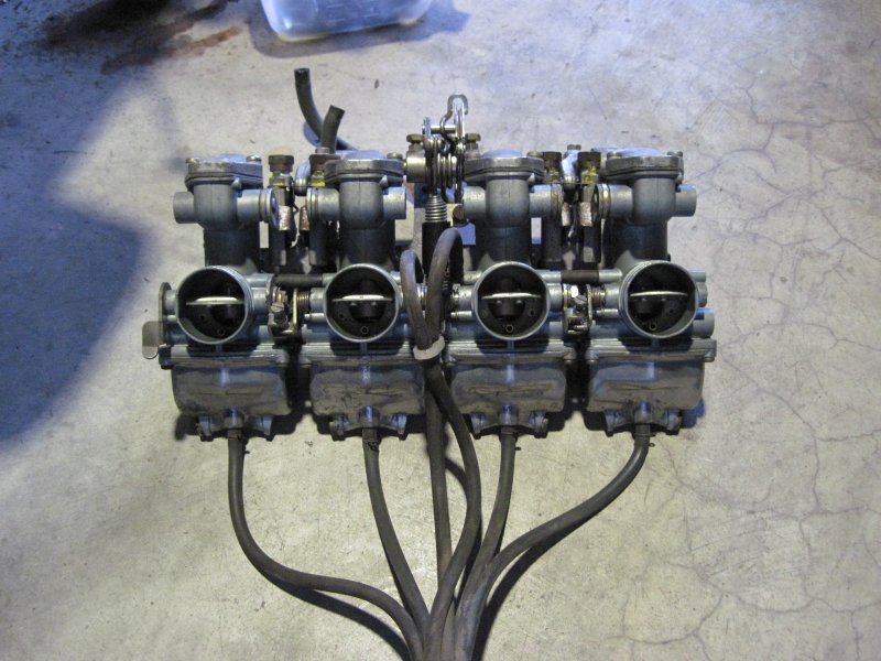 The frame will be powder coated, probably with a metallic finish and then a clear coat. I'll probably keep the aftermarket 4 into 1 headers already on there, although they'll get completely stripped, refurbished, and powder coated. I haven't decided what to do about the muffler yet. The center stand will likely be lost. The engine I believe is in really good shape, so pending a cursory examination no major surgery should need to happen there. I do want to split it open and then degrease/repaint/polish/plate its surfaces. Taking it apart arouses some serious trepidation in me; we'll see if I can actually do it myself or whether I'll need to call in some expert(s). I really would like to learn how to do this on my own, so I figure this is as good a time as any.