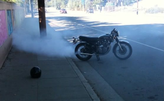 It seems to idle really nice, with only a bit of popping (likely points are getting a bit worn, but they were filed and gapped - I have a set of dynas on order, but wanted to see if the bike would run as is for now)