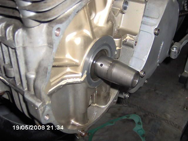 Think the spacer is not to compensate for the smaller width, but to 'plug-off' the oilchannel in the crank. This channel provides oil to the starterclutch.