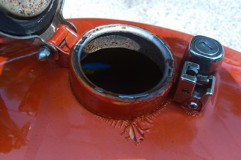 The heat had apparently made the fuel expand and it seeped out of the cap and onto the paint....lifting it and leaving streaks down the side. I just about fell to the ground. I didn't overfill the tank. It was filled up to about the bottom of the filler neck while on the side stand like I usually do. I have never had fuel overflow like this....although I don't think I've ever had the bike sitting out in near 100 degree heat before.