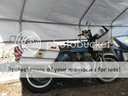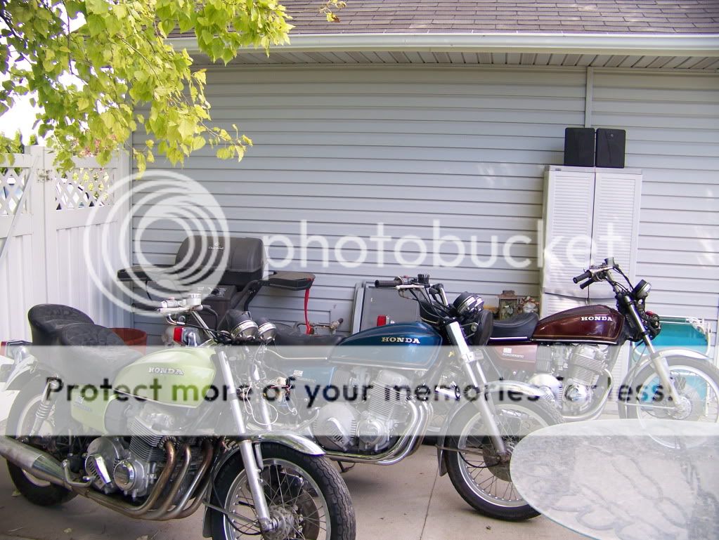 Well here they are, the way looked when I got there. Not too bad. The red '77 had a dent in the tank, other than that all sidecovers are there and good shape and all tanks look in good condition on the inside. Paint is not terriablr. The owner had said that they all ran but, they did say in was 4 years ago. Anyway I checked to make sure the engines all were free, and they are. Had to pull everthing off them to get them on my trailer. No matter, all that crap was comming off anyway. They look better already. Now I got 4 sets of farings, lowers and saddle bags counting the set from my Tracy bike. Guess I'll fill somebody's dumpster.