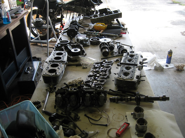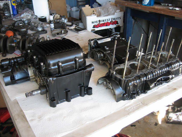 Where I'm at now, I'd like to clean and inspect everything in the cases, replace the bum parts plus rings & hone, and just try and get it started. I'm on a budget, but while I've got the engine apart I'd like to get it all brought back to glory.