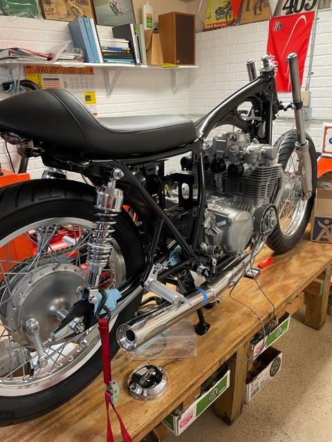 My nephew Jordan and I are building a 550 out of one of my spares.  I have several that I have collected over the years to support my racing efforts. The motor has a set of 61mm JE Hot Street pistons and 358b Webcam.  The project was started 3 years ago, but a new job and baby have slowed progress.  Here is where we are to date.