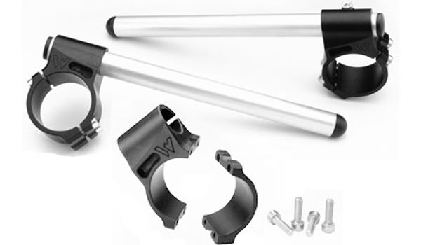 Hey, I know it's been discussed before, but i'm having a hard time finding in the search what i'm looking for. Clip on bars that you don't have to remove the fork tubes to get on, the clamp has 2 parts so they can go on without messin with the tree (I'd try, but untill i get new forks, the rusty one's are not coming out for that amount of trouble)