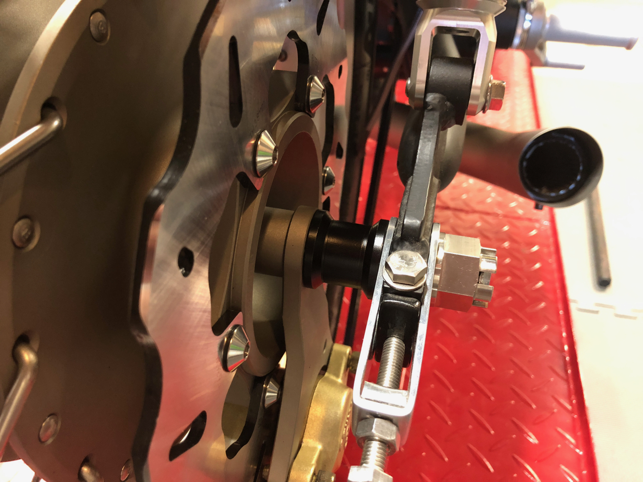 I don't like how the brake strap fits with this hub. It needs an offset. The strap is also a little short in the the rear caliper will be straight down. I wanted to correct this along with giving my 130 tire a little more breathing room. I mocked up a new strap and am having it 3D printed in SLS. I should have it tomorrow. I also included a grove along the back that the brake line will mount into (not visible here). If everything fits up nicely it will get machined here soon.