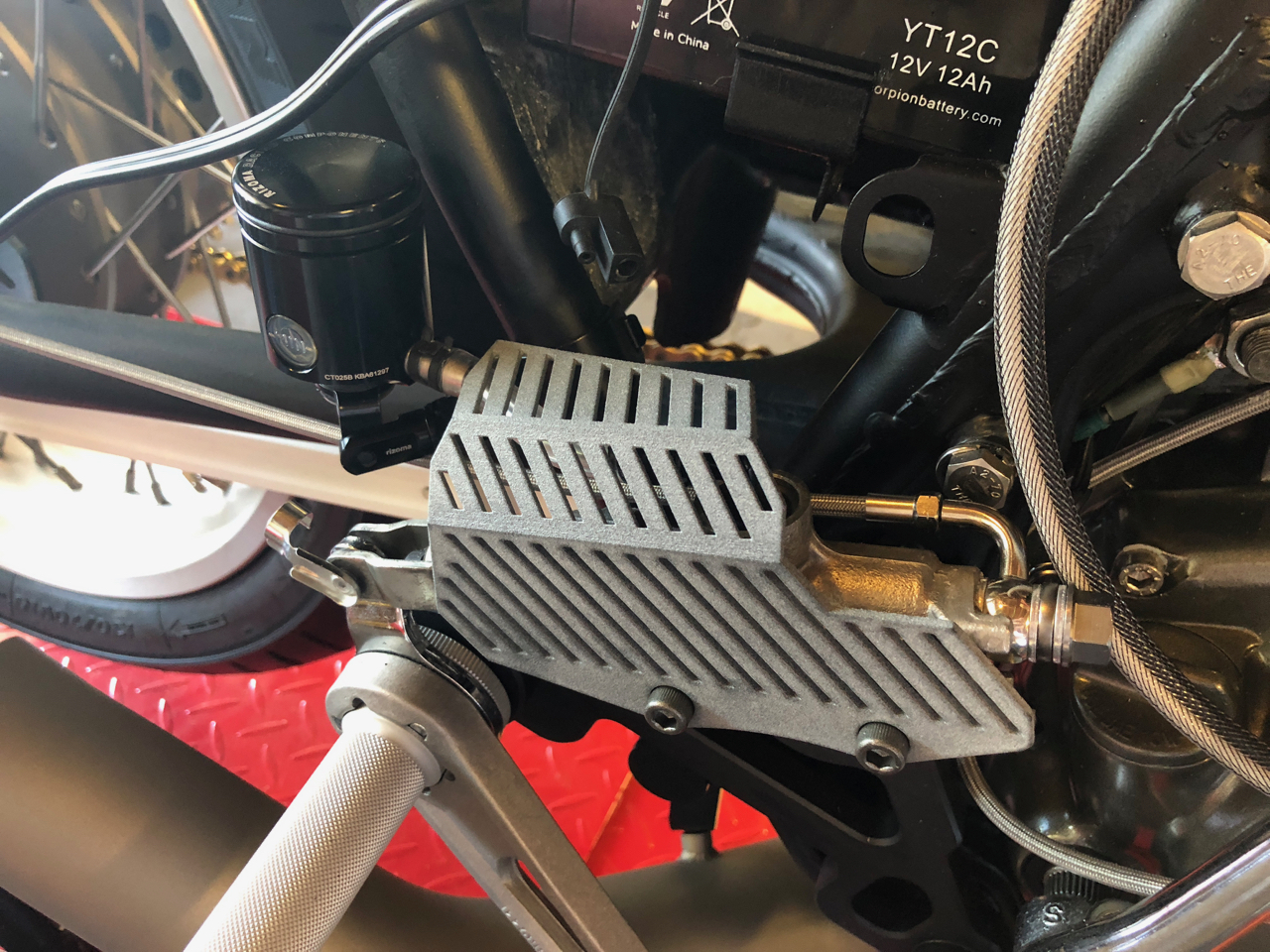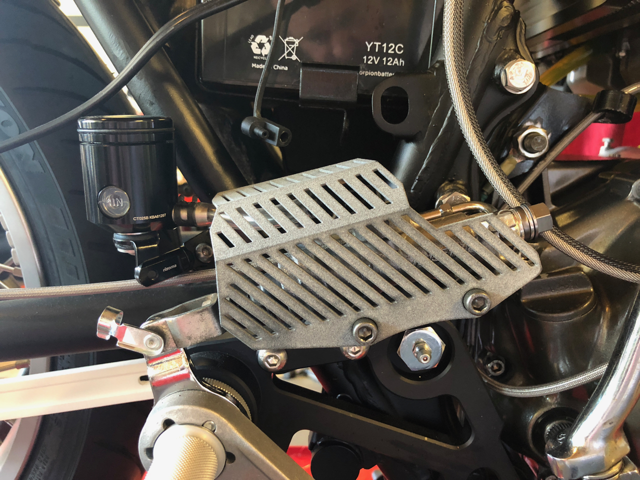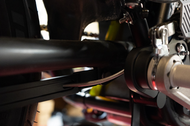I also got my brake strap made. Thanks to luvmy71 to strap turned out great. I made some changes to my design. I got it painted up and mounted. Brake line runs into and along the back so it is nice and out of the way. I think it turned out great and have great clearance for the disc and and rear tire.