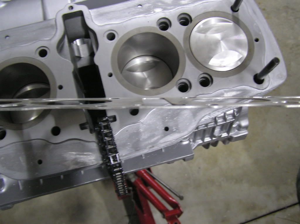 For the head to sit flat onto the block, the pistons had to drop .040" into the bore.