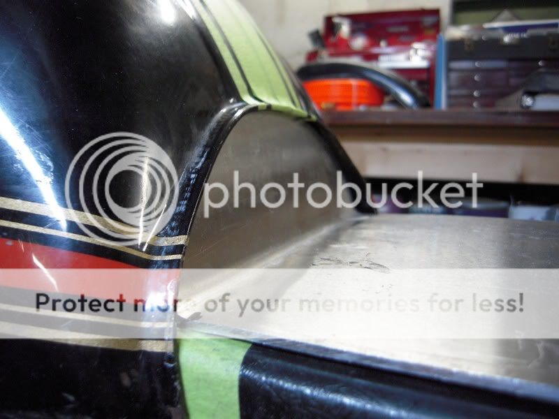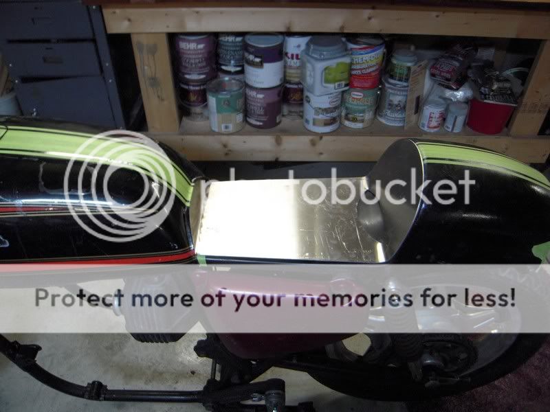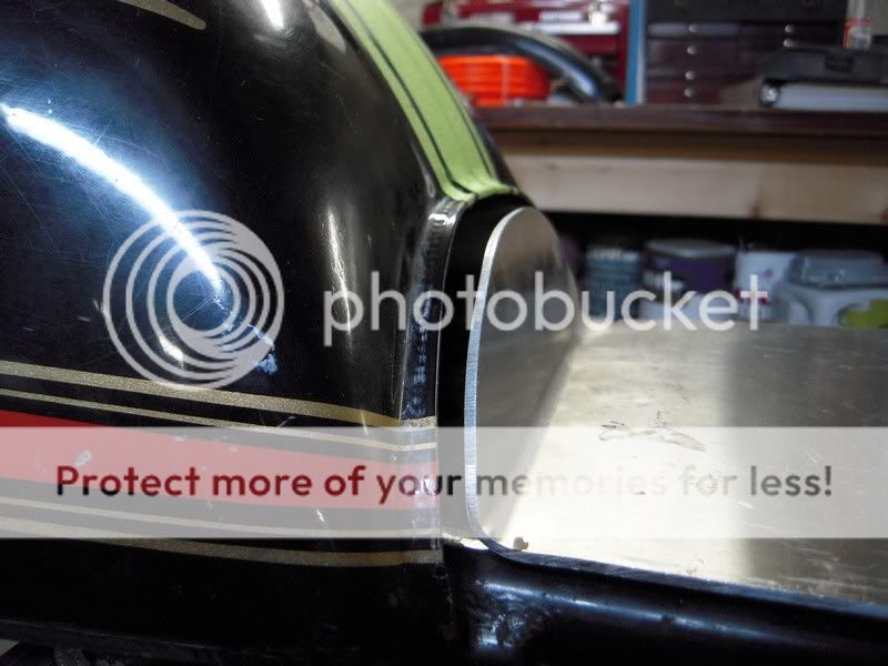 I need a little help fitting the upholstery pan on my cafe seat. I'm not sure where is the best place to bend up the front portion. The second and third photos show my two options. I would like the seat pad to cover the rear edge portion of the tank, like a stock seat does. I haven't found an upholsterer yet so I'm asking the forum here. Can the foam be extended up past the edge of the upholstery pan?