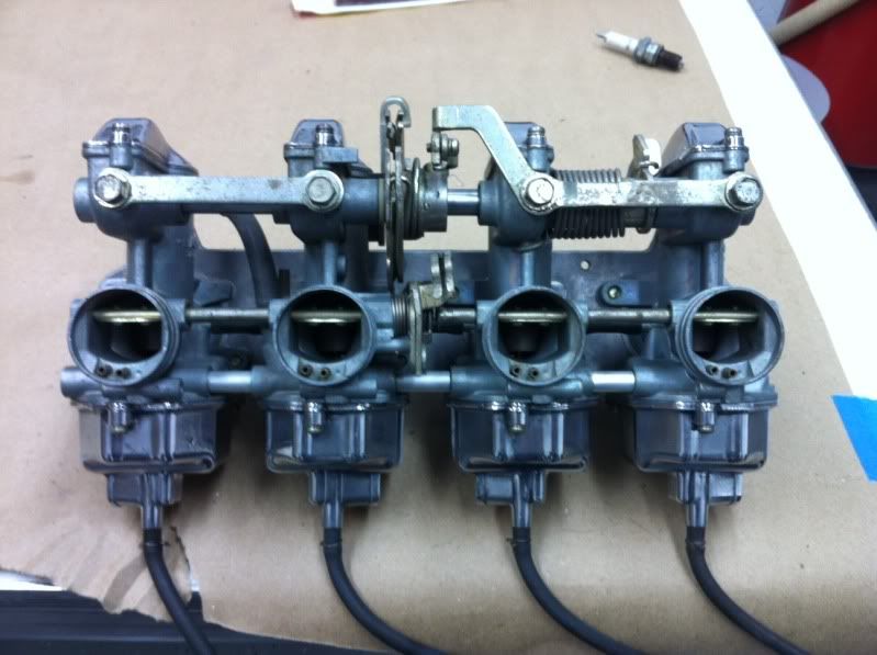 i thought perhaps the jet screws into the emulsion tube, but they dont budge, which at the time lead me to think its one piece. perhaps mine are really seized togeather? i put the 7mm on the emulsion tube and tried to twist the jet off with a flat head as well as pliers and nothing. can someone school me on these carbs as far as jetting, and where to get jets from that fit? the bike is a 78 and has the pd carbs on it. the bike has uni pods and a mac 4-1 with "race" baffle.(pretty free flowing) here some photos of whats inside the float bowl.