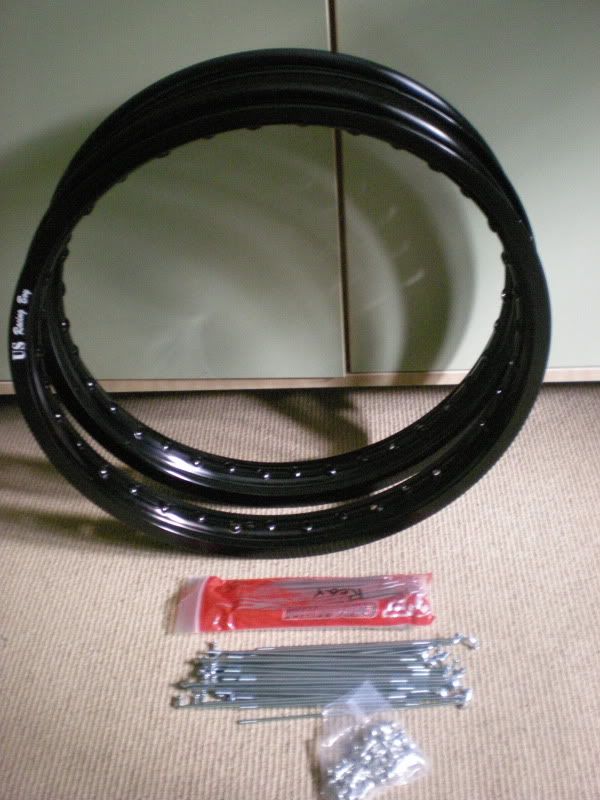Received my black alloy rims and chrome spokes today from thailand! Look very nice, I cant wait to lace them up and try them out!